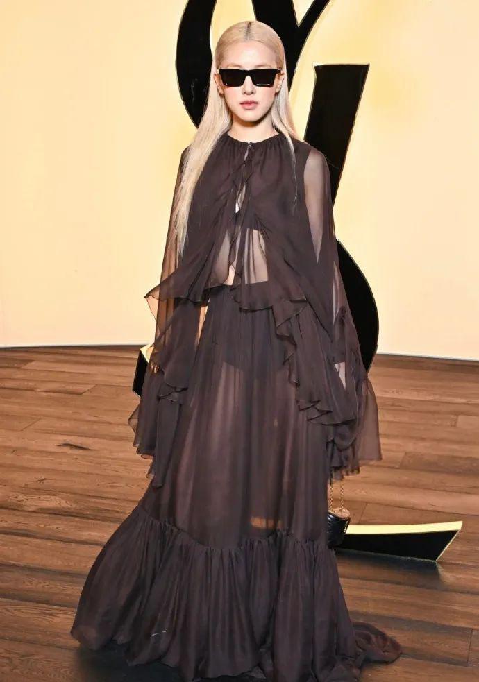 一袭2024春夏系列的飘逸纱裙,金发梳得一丝不苟,搭配墨镜和尖头高跟鞋,让原本柔美飄逸又仙气感的造型增加了酷感和率性。
