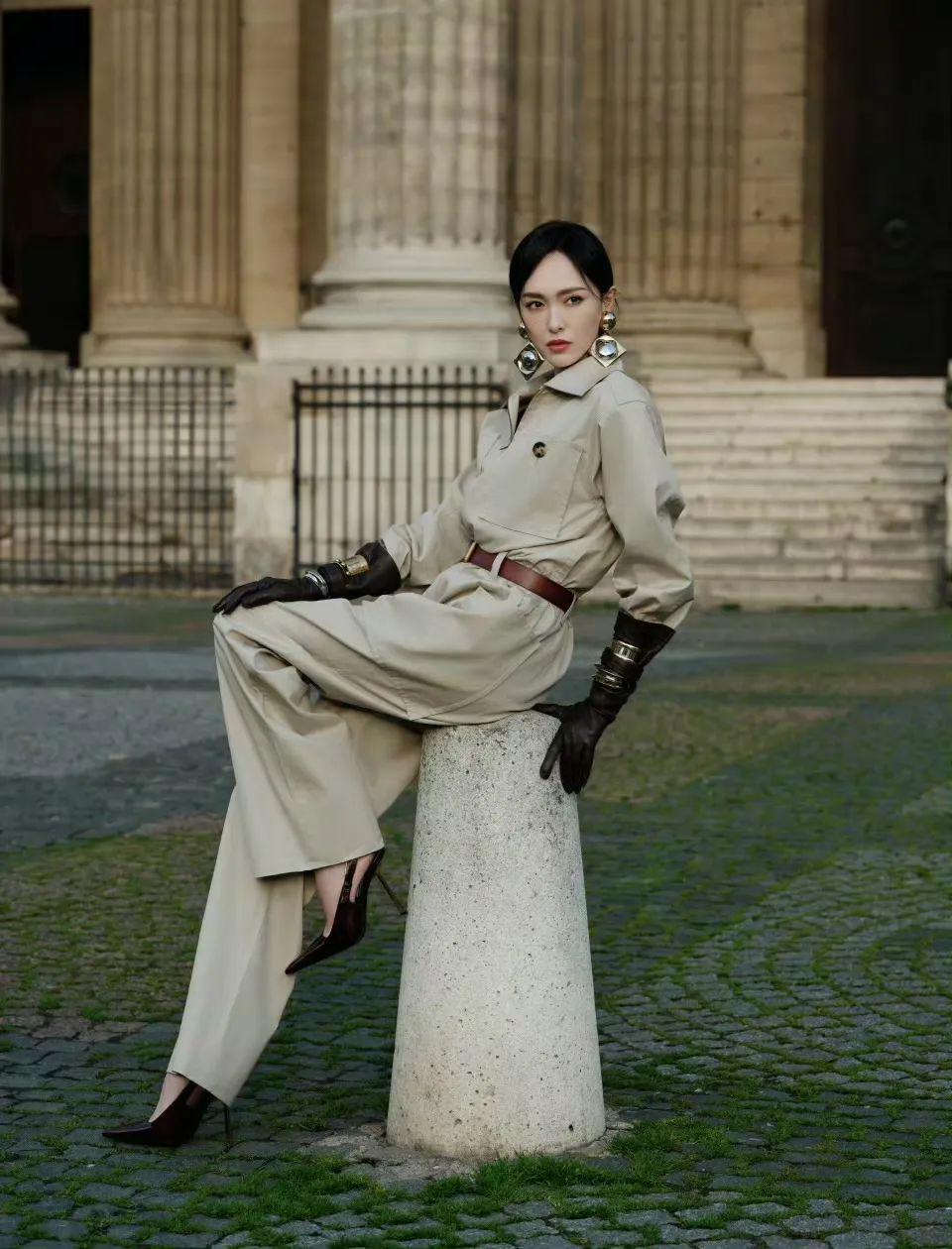 吴千语也有以一身品牌2024春夏系列玫瑰扣收腰外套亮相,颜值这块也是没话说的~