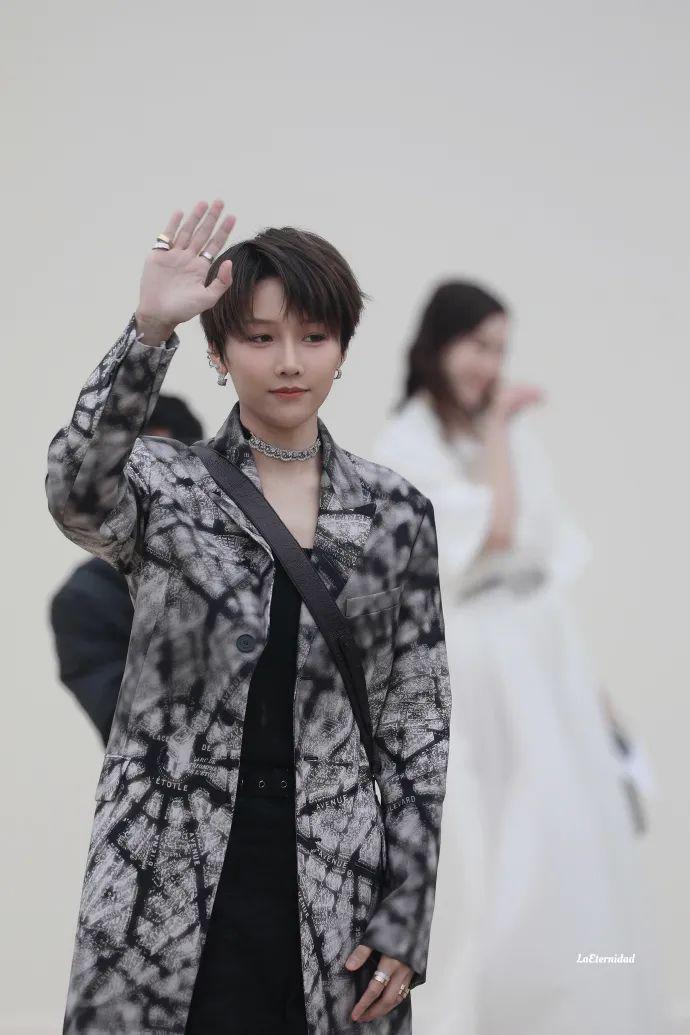 开秀当日即凭借出席大秀而登上微博热搜的刘雨昕,身着Dior 2024春夏系列长款印花外套,搭配优雅简约的钻石chocker,时髦摩登又帅气十足。