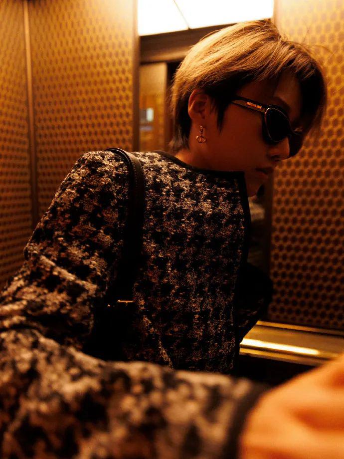 另一套造型直接斯哈斯哈,恰到好处的衬衣纽扣,西装配墨镜霸道女总裁上线。
