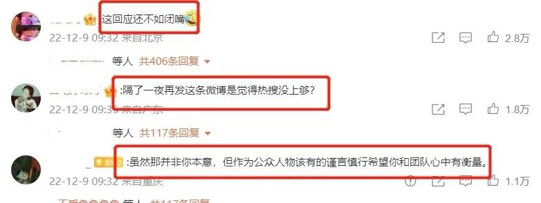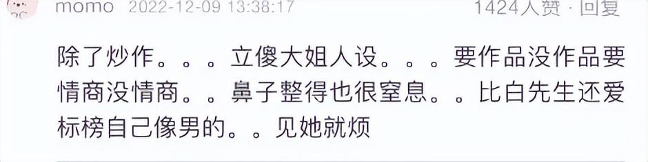 最后,一位演员想要在娱乐圈中立足,就用作品说话,不要没作品,老爱出来炒热度,很容易翻车的。同时被骂了,说话还不好好说,各种阴阳怪气的内涵,实在是不阳光,希望其他人引以为戒,既然不想被被人非议,就不要做惹人争议的事情。