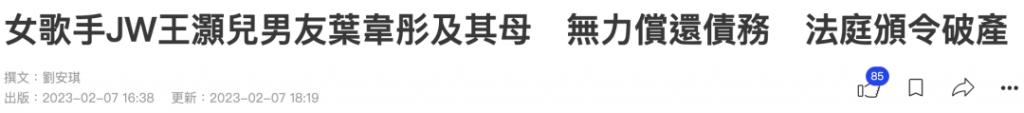 最终,2025年1月,叶俊亨率先被法庭颁令破产。接着2月,钟佩云和儿子叶韦彤的破产案也在高等法院处理,两人缺席聆讯,最后法庭宣布他们无力偿还债务,颁令破产。