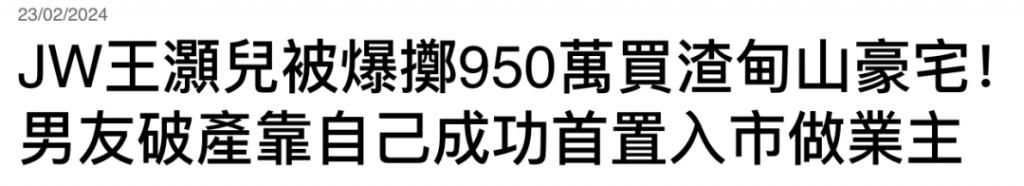 今年年初,JW还首次置业,买下大坑半山春晖道大坑台价值950万港币的房子,自己成为了业主。