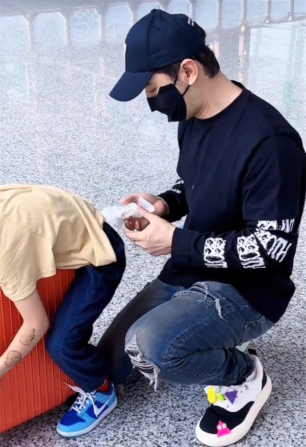 细节中可以看到,黄晓明是单膝跪地的姿势给儿子擦汗,丝毫没有偶像包袱,此时的他就是一个担心孩子出汗太多的父亲,照顾孩子非常用心,从这点也能看出,黄晓明确实很爱孩子,也很尽责。