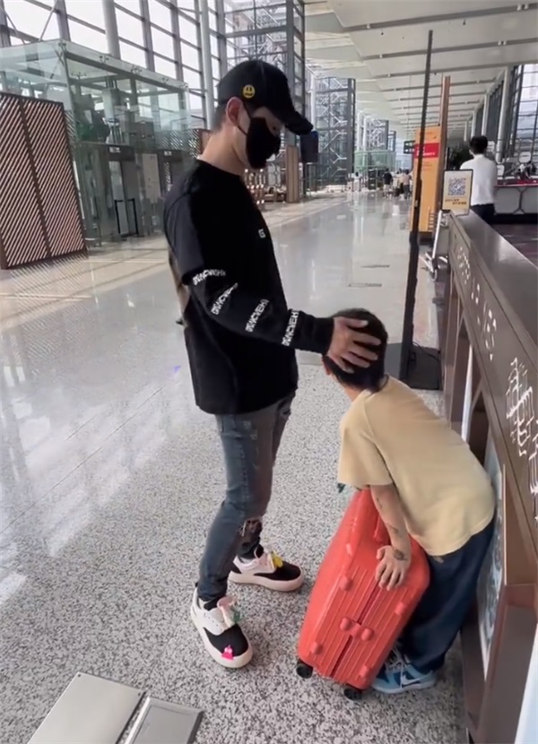 黄晓明与孩子的关系很融洽,因为天气热黄晓明问儿子热不热,他看到儿子的后背全都是汗,直接拿着纸巾给儿子擦汗,小海绵则乖巧地趴在行李箱上。