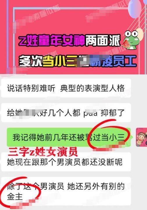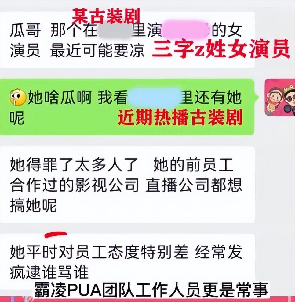 7月13日,有媒体爆料某Z姓三字女演员给已婚男演员做第三者,且私下为人刻薄,经常PUA员工,其说话非常难听,典型的表演型人格,与她合作的好几位员工都抑郁了。