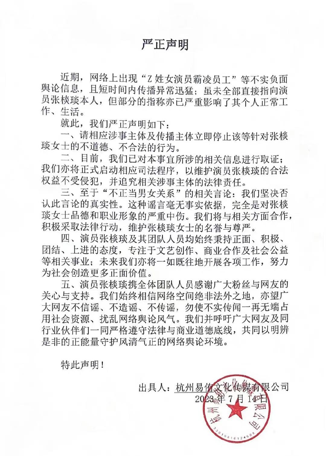 如今再度被娱记爆料“知三当三”,且霸凌员工,张棪琰又一次站出来辟谣,7月14日,她通过工作室发布声明。