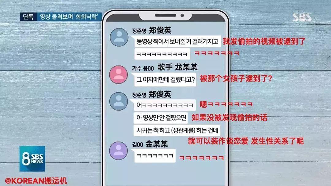 据韩国媒体爆料,除李胜利以外,郑俊英也参与了本次的事件中,据悉郑俊英口味更是奇葩,他喜欢在聊天室里传播自己的不雅视频,从2016年就已经开始偷拍,并且唆使其他艺人好友一起加入,该聊天室共有8人,除1名普通人外,其余6人都是韩娱艺人。