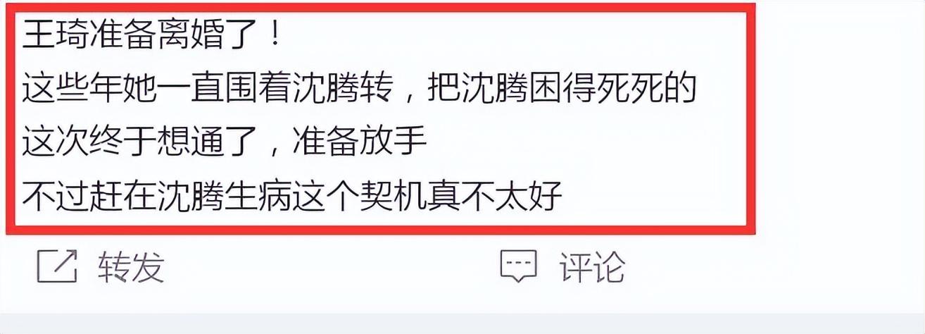 有瓜主也透露王琦准备离婚了,沈腾虽然是喜剧人,但内心孤独爱自由。王琦偏偏是控制欲太强的人,这些年她围着沈腾转,将沈腾困得死死的。这次她终于想通了准备放手。