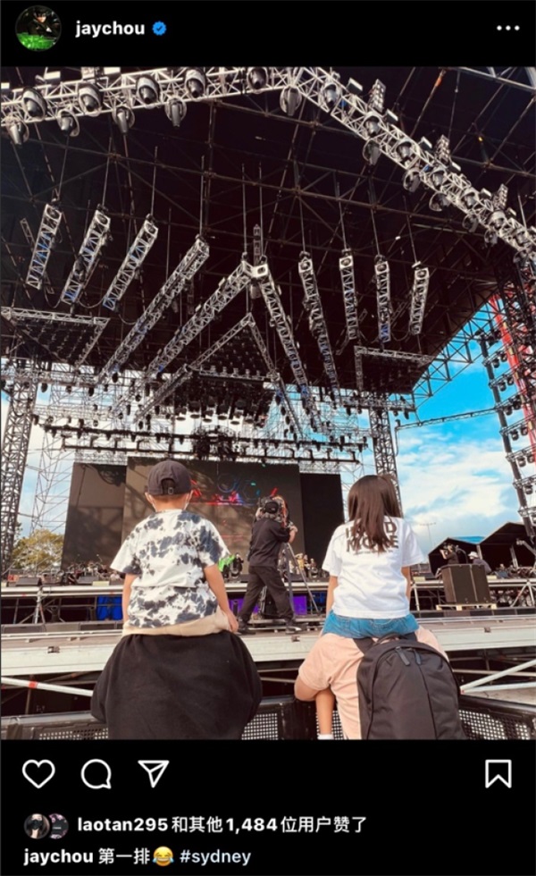 赶在演唱会开唱前夕,3月3日晚,周杰伦开心晒出演唱会相关动态。周杰伦大方公开舞台照和一双儿女背影照,并调侃罗密欧和海瑟薇占了演唱会第一排位置。