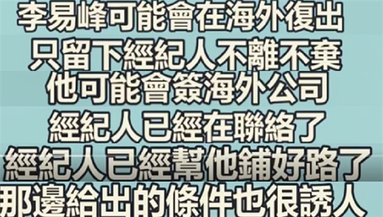 从这点来看,李易峰经纪人是非常用心的,都是在为他切身考虑。现在的局面李易峰在内娱是待不下去了,这边对劣迹艺人的打压十分严格,不会再有复出的机会。而出国的路子,是最好的选择。