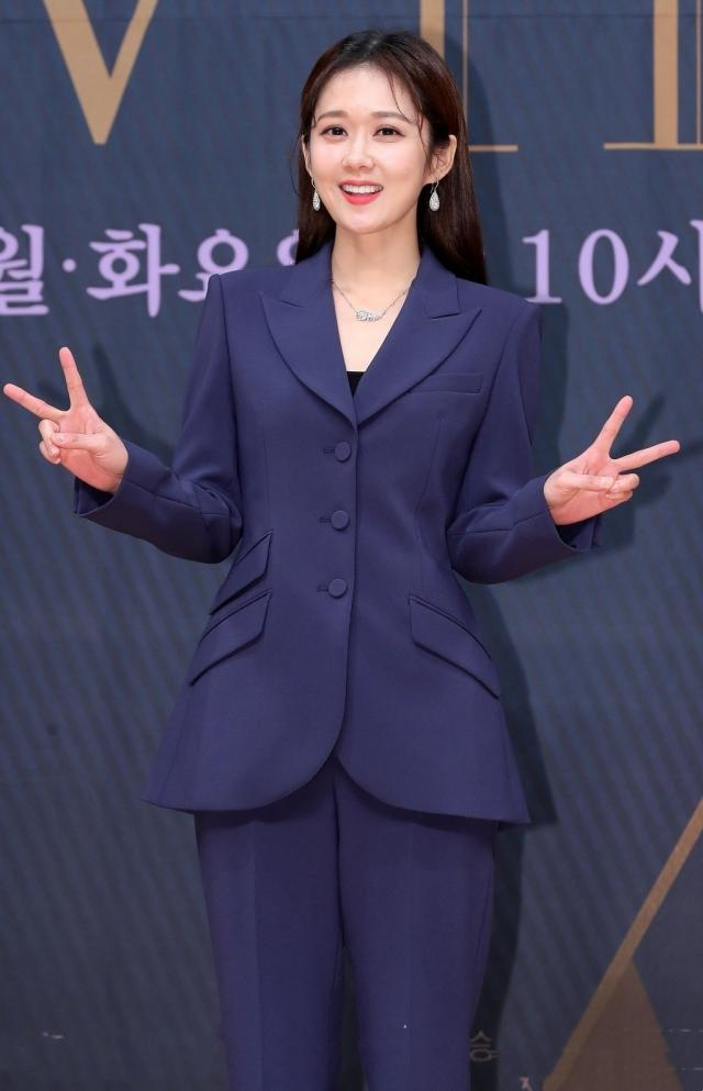 颜色如此深沉的蓝色系西装,款式也不是特别新潮,全靠张娜拉颜值再撑,肤色白皙,真是完美驾驭任何衣服,即使没有穿出那种大气感,但是简约利落,也是优雅又知性。