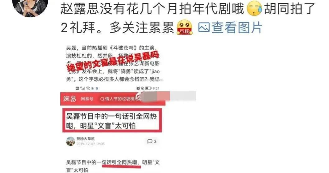 于是“绝望的文盲”这个帽子,又戴在了赵露思的头上。