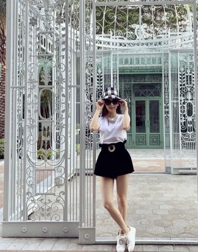 方媛平时经常带着女儿一起玩耍,母女俩在一起也像是姐妹俩一样,照片中的方媛穿着白色的圆领短袖,下半身搭配黑色的高腰短裤,腰部的设计就像是花苞的效果一样好看,把方媛的气质显得更加减龄,虽然只是简单的T恤配短裤,却看起来更加完美减龄了,头上搭配了一顶黑白格纹相间的渔夫帽,和女儿看起来也没有任何的代沟。