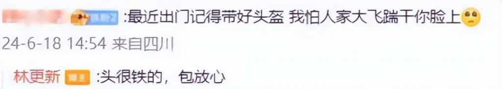 有网友好心提醒," 最近出门记得带头盔,怕有人直接踹他脸上。"