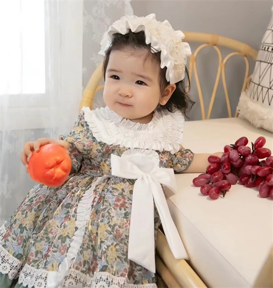 已经1岁半的宝宝,换了多套不同风格的裙子,还扎着小辫子,很是呆萌。