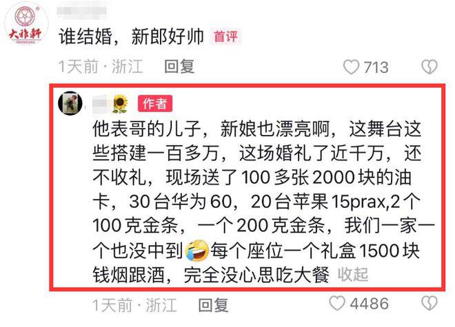 义乌首富儿子结婚!现场送金条茅台,曝女方陪嫁 12 亿