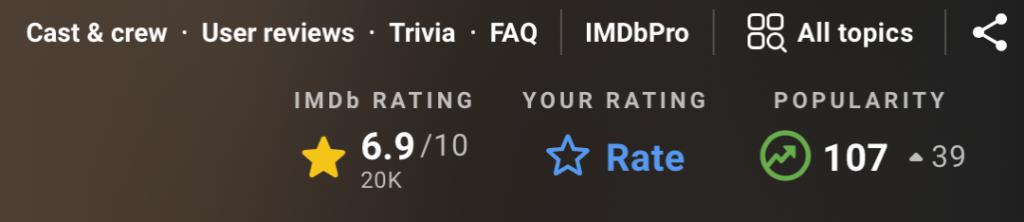 IMDb6.9分,豆瓣仅有6.1分。