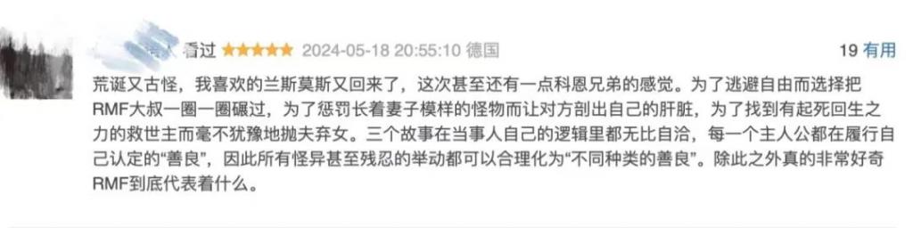 但是,实话实说,兰斯莫斯依然是当今世界影坛非常有个性有自我表达的一位导演。