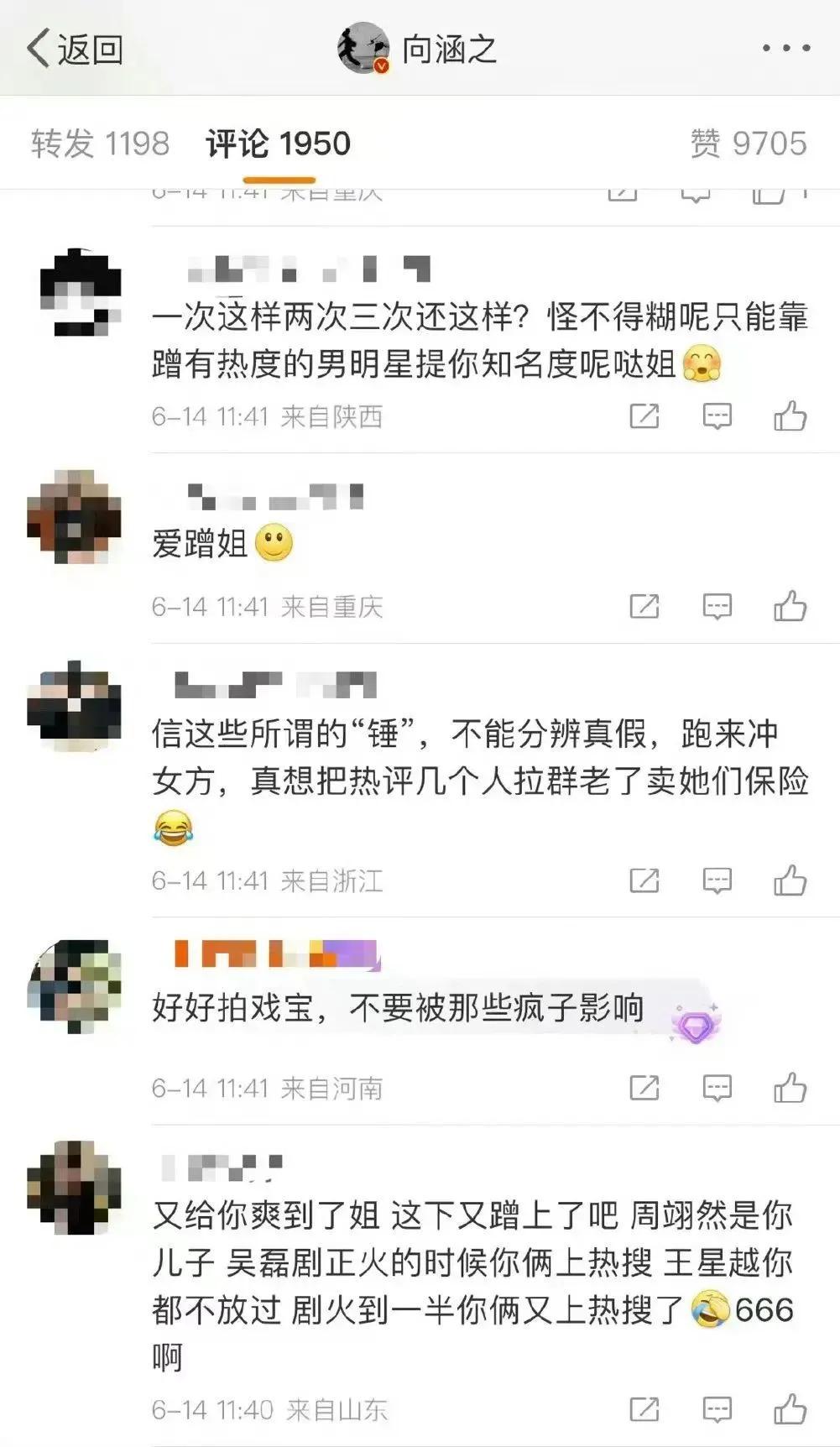 向涵之的评论区已经彻底沦陷了,被骂蹭热度,