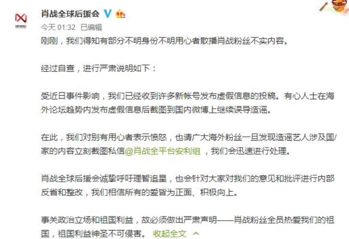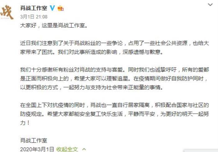 3月1日晚,肖战工作室终于发微博道歉,随后肖战全球后援会发微博道歉。但是事情到此仍然没有结束。首先是工作室的道歉声明只字未提其他因此而受牵连的人,它们才最应该是被道歉的对象。
