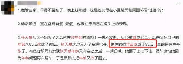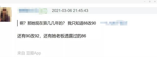 而张天爱的年龄被关注不是第一次了,之前她的资料在年龄这一栏就从88年出生变成了92年出生,最近有网友爆料,疑似又更改了年龄,而这次直接变成了95年生人,不得不说,这一波操作很是迷惑。而网友对她的年龄更改也记得十分清楚,更有人记得她老板曾经说过她是86年的。