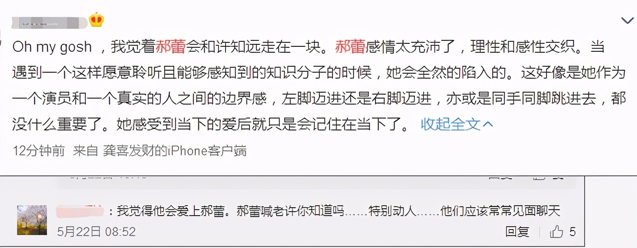 还有网友说,“我觉得许知远会爱上郝蕾,他们俩应该常常见面。”