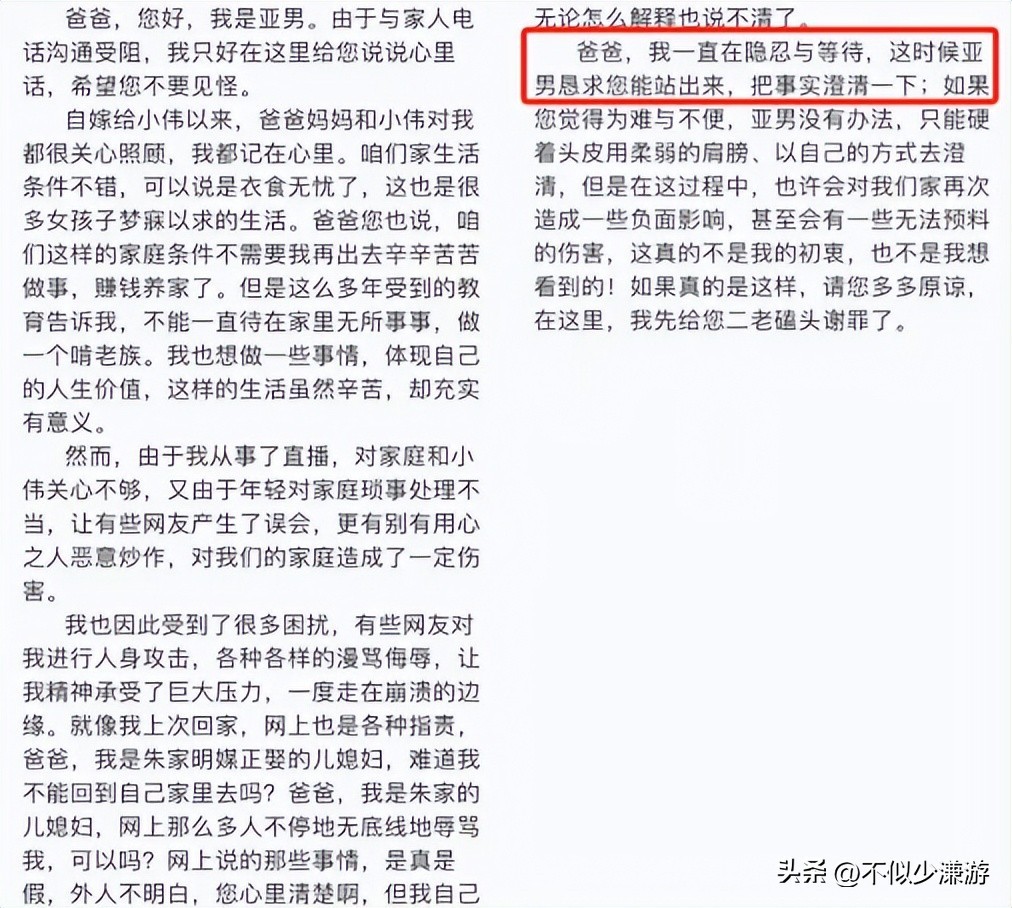 她便一边解释“朱小伟人品好,我不图他家钱”,一边又澄清:“结婚后没拿过他父母一分钱”。
