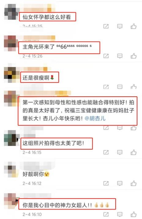 2月4日,胡杏儿在社交平台上晒出了一组孕期写真。