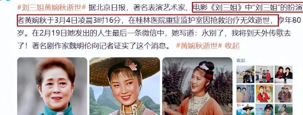 “刘三姐”黄婉秋:曾红遍大江南北,病逝后丈夫的选择令人泪目