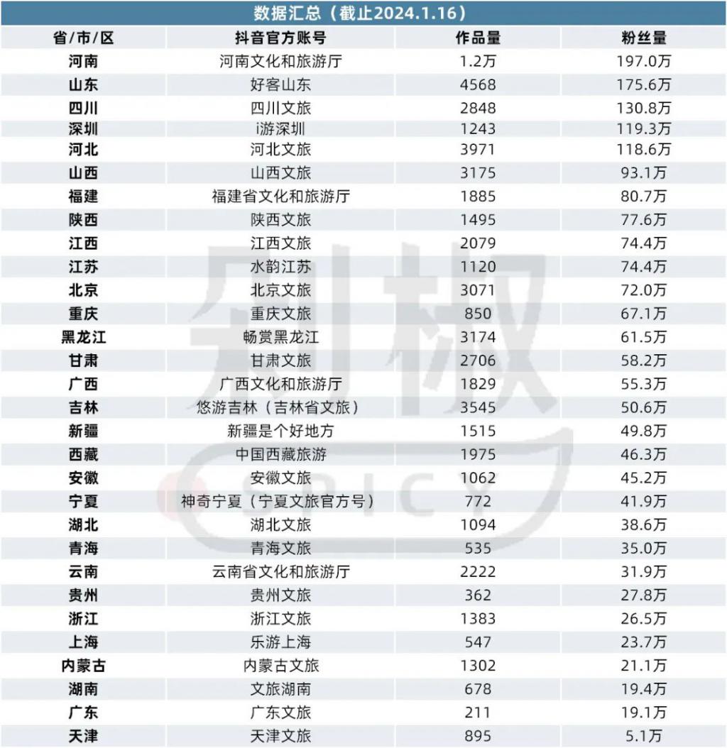 盘点各个地区的官方文旅账号发现,几乎 90% 以上的省级文旅局都参与这场流量争夺战。而且不少地区的市、州、县的官方账号也积极吆喝,努力跟上这一趟流量快车。不过,也并非所有文旅局都蹭到了热度。