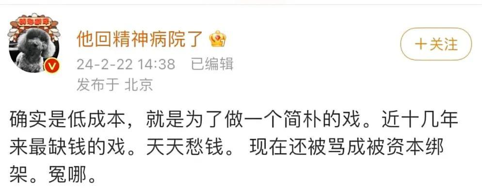 而自己不仅没" 收华为红包 ",《猎冰》还是他近十几年来制作成本最低的一部作品。