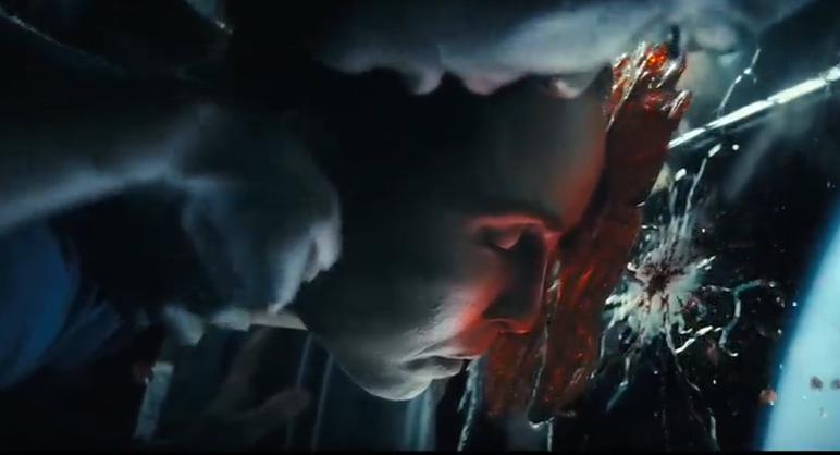 液体无法在太空中流淌,飞溅的鲜血凝成大颗水滴,呈现诡异漂浮姿态。