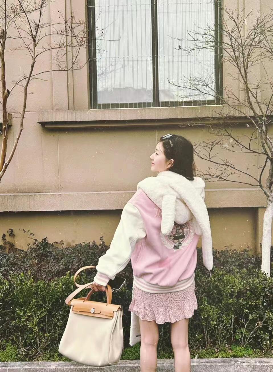 立春过后,冰雪消融,树上的蓓蕾也积攒了一个冬季的力气,准备绽放,大地草色返青已经苏醒。当红小花赵露思穿上粉色和白色拼接的棒球服,下身搭配一条粉色的碎花裙,配上一条白色的羊羔毛围巾,一整套学院风造型,少女心满满,在社区里感受春天的美好。