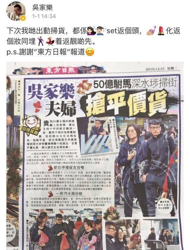 2025年由吴家乐主持的《今日VIP》宣布停播,吴家乐吐槽“运势不好”,而香港网友则表示“他不上班都会很豪华”。其实各家都有难念的经,吴家乐夫妇多年来一直秉持低调作风,出门都是搭载公共交通,甚至会趁着节日促销专程跑很远购平价货。