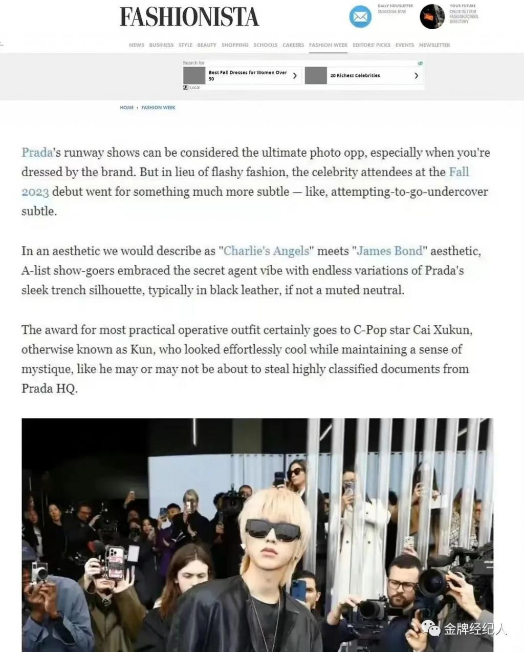 得到品牌极高待遇的蔡徐坤也并没有怯场,无论是秀场还是晚宴,他都用流利的英语游刃有余地与到场嘉宾交流,展现中国流行明星的风采。而他在秀场中的表现也被海外多家权重媒体报道,被介绍为 " 当晚最受瞩目的明星是来自 C-pop 的蔡徐坤 "。