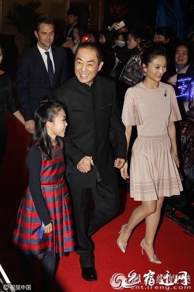 此前,12月6日,电影《长城》举办首映礼红毯及发布会时,张艺谋就携妻子孩子一同出席,被赞颜值爆表。