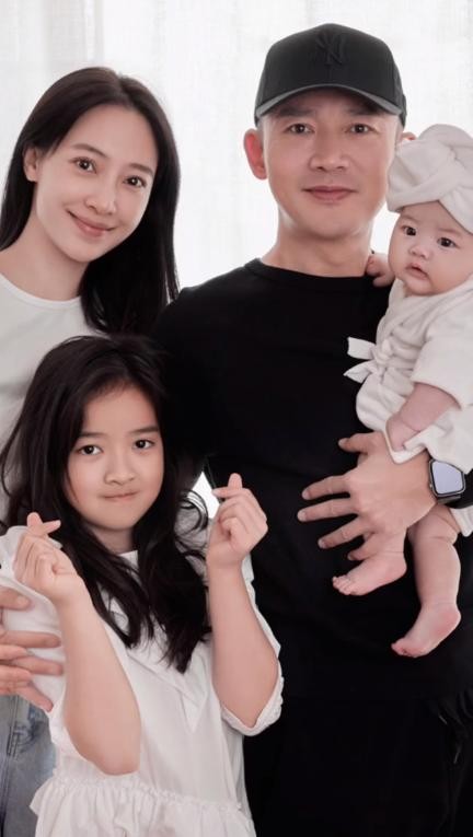 聂远老婆晒全家福庆结婚10周年,一家四口共用一张脸,颜值都好