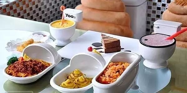 这家“便所主题餐厅”在刚推出时,也是被各大媒体争相报道。餐厅突破性的就餐环境,当时着实刷新了食客们的三观,令人记忆深刻:餐厅以厕所文化为主题设计而成,坐在马桶上,服务员端上一个马桶形状的容器,里面是“粑粑”形状的菜品。