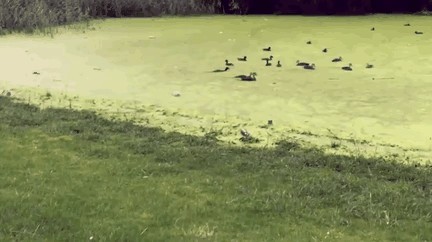 24 小心翼翼地试探试探,这冰到底冻结实没有,哎呦,还是摔下去了!还好,水不太深!