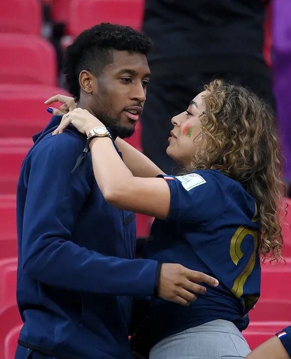 不落后于现任世界冠军的女友和妻子。这是法国中场金斯利·科曼和他的妻子萨布丽娜·杜瓦德温柔的拥抱。