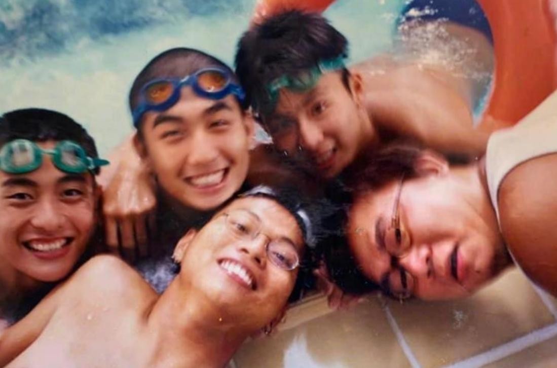 照片是当时拍摄某柠檬茶广告的场景,黄宗泽在边角位置最少,几乎要被挤出画面框。不过,留着寸头的他看起来非常有少年感。