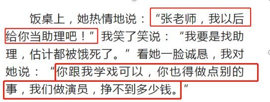 经人推荐才找到张伸,希望从当他的助理开始,让他教她拍戏,带她在演艺圈闯荡。