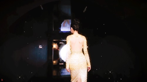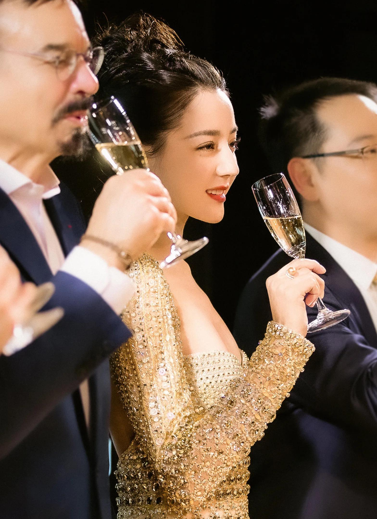 第二场活动时,虽然也是低胸露背的金色礼服,跟从前的风格一样。