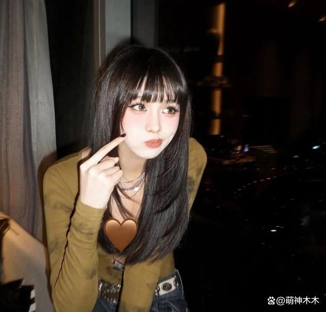 成年的她不仅开始尝试各种新奇的妆容,也开始选择大显身材的衣服,她穿着紧身抹胸上衣,微微向前倾身,做着大胆动作的她却摆出了可爱又调皮的表情,她鼓起脸颊,用涂着黑色指甲的手指做出戳脸的动作。