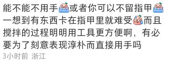 把短视频那套直接挪用过来,比如干活的时候精装到指甲盖,镜头还特别“体贴”地给了一个大特写,恨不得写上“我好优雅,快来看我”八个大字 。