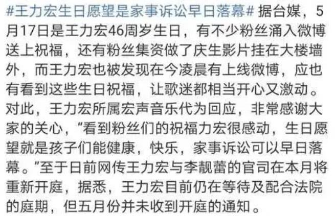 王力宏本人也通过媒体表达了对粉丝的感谢,称自己的生日愿望是孩子们健康快乐,离婚诉讼可以早日有个结果。