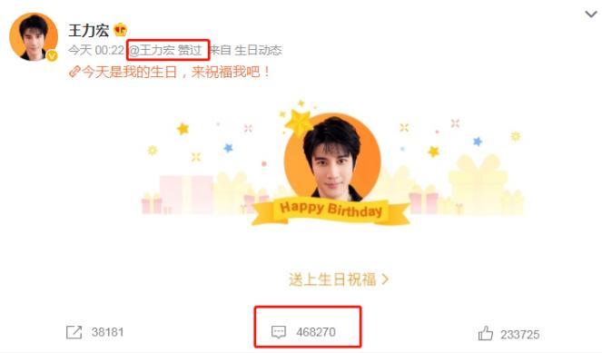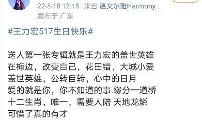 但从生日当天的社交平台留言来看,王力宏的人气依然火爆。