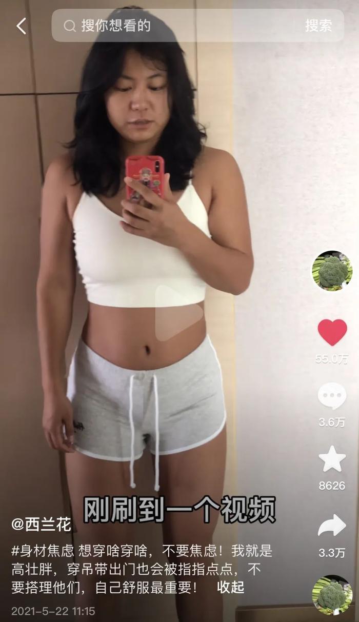 有一次西兰花刷到一个视频,女孩因为没有减肥而自卑不敢穿短裤,西兰花立马发了一条自己穿着短裤背心的视频。