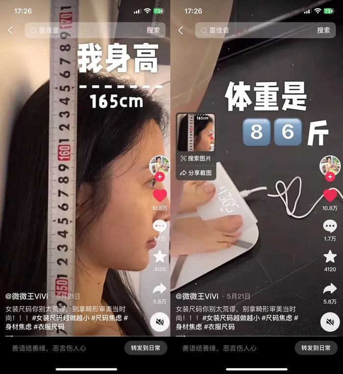 张馨予的吐槽一下给了女孩们一个出口,开始倾泻被女装尺码绑架的焦虑。